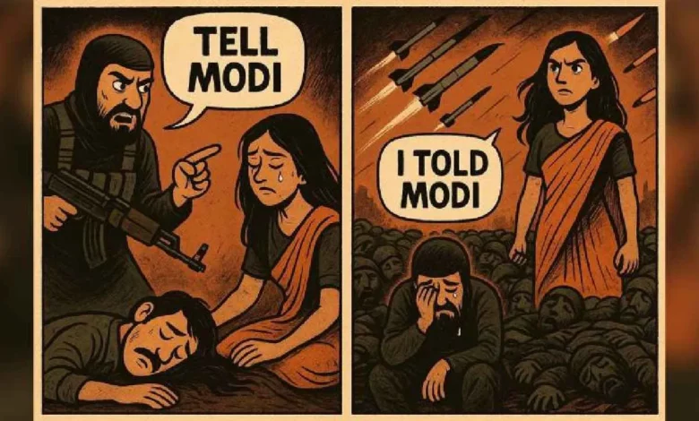 ನವದೆಹಲಿ, (ಮೇ 07): ಕಾಶ್ಮೀರದ ಪಹಲ್ಗಾಮ್ನಲ್ಲಿ (Pahalgam Terror Attack) ಏಪ್ರಿಲ್ 22 ರಂದು ಪ್ರವಾಸಿಗರನ್ನು ಗುರಿಯಾಗಿಸಿಕೊಂಡು ಉಗ್ರರು ಭೀಕರ ದಾಳಿ ನಡೆಸಿದ್ದು, ಈ ದಾಳಿಯಲ್ಲಿ 26 ಅಮಾಯಕರು ತಮ್ಮ ಪ್ರಾಣವನ್ನೇ ಕಳೆದುಕೊಂಡಿದ್ದರು. ಇನ್ನು ತಮ್ಮ ಗಂಡಂದಿರನ್ನು ಕೊಂದ ಉಗ್ರರಿಗೆ ನಮ್ಮನ್ನೂ ಕೊಂದು ಬಿಡಿ ಎಂದು ಮಹಿಳೆಯೊಬ್ಬರು ಕಣ್ಣೀರುತ್ತಲೇ ಹೇಳಿದ್ದಳು. ಇದಕ್ಕೆ ಉಗ್ರ ನಿನ್ನನ್ನು ಕೊಲ್ಲಲ್ಲ ಮೋದಿಗೆ ಹೋಗಿ ಹೇಳು ಎಂದಿದ್ದ. ಇದೀಗ ಭಾರತ ಸೇನೆ (Indian Army) ಆಪರೇಷನ್ ಸಿಂಧೂರ್ (Operation Sindoor) ಹೆಸರಿನಲ್ಲಿ ಪಾಪಿಸ್ತಾನದ ಕ್ರಿಮಿಗಳ ನೆಲೆ ಧ್ವಂಸ ಮಾಡಿದೆ. ಇದರ ಬೆನ್ನಲ್ಲೇ ಆ ದಿನ ಪತಿಯೊಂದಿಗೆ ನನ್ನನ್ನು ಕೊಲ್ಲಿ ಎಂದಿದ್ದ ಅನೇಕ ಮಹಿಳೆಯರು ಭಾರತೀಯ ಸೇನೆಯ ಪ್ರತೀಕಾರಕ್ಕೆ ನಿಟ್ಟುಸಿರು ಬಿಟ್ಟಿದ್ದಾರೆ. ಇದರ ಬೆನ್ನಲ್ಲೇ ʻಮೋದಿಗೆ ಹೇಳುʼ ಎಂದಿರುವುದು ಮತ್ತು ನಾನು ʻಮೋದಿಗೆ ಹೇಳಿದ್ದೆʼ ಎನ್ನುವ ಕಾರ್ಟೂನ್ ಭಾರತೀಯರ ಸಾಮಾಜಿಕ ಜಾಲತಾಣದಲ್ಲಿ ವೈರಲ್ ಆಗಿದೆ.