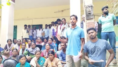 ಕ್ಯಾತನಹಳ್ಳಿ ಗ್ರಾಮದ ಕೂಲಿ ಕಾರ್ಮಿಕರಿಂದ ಪ್ರತಿಭಟನೆ.